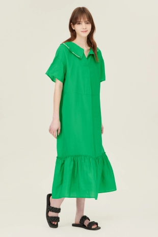 A 라인으로 플레어지는 밑단으로 체형 보정에 용이함.