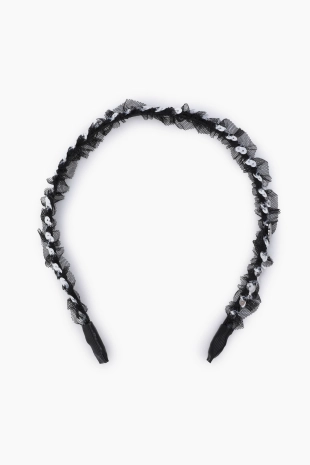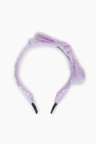 프릴 테잎 디테일이 돋보이는 빅 리본 헤어밴드.