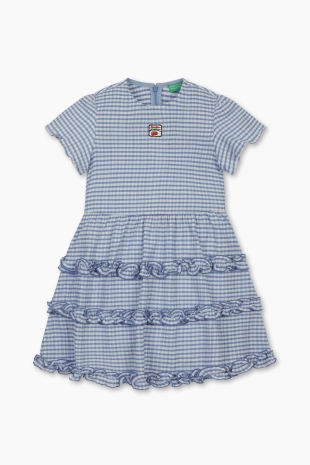 풍성한 엠보 원피스와 프릴 티셔츠가 레이어된 디자인의 러블리한 원피스.