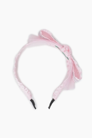 프릴 테잎 디테일이 돋보이는 빅 리본 헤어밴드.