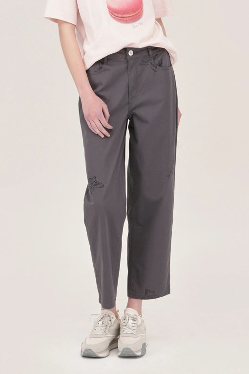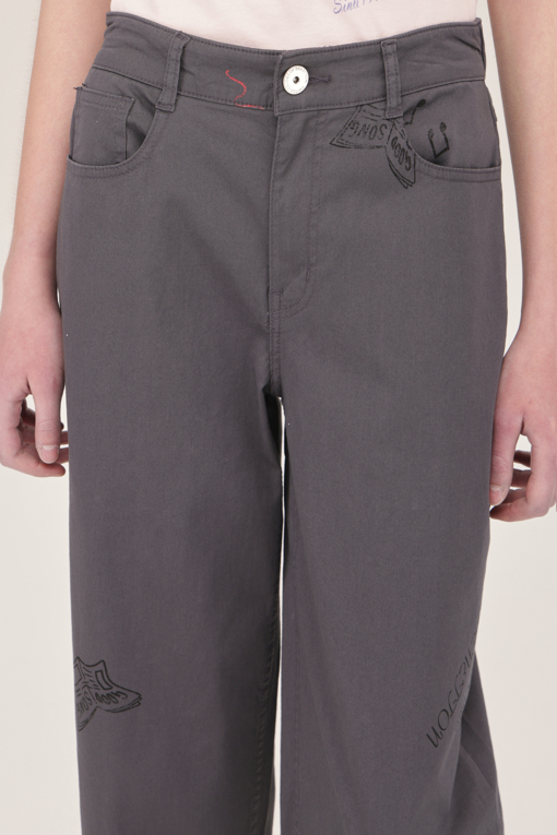 부분적으로 들어간 배색 프린팅이 스타일리시한 일자핏 팬츠.