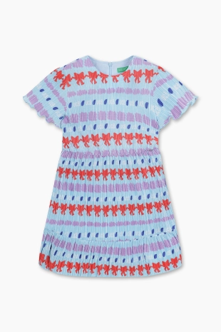 베네통만의 비비드한 칼라감이 돋보이는 쉬폰 원피스.