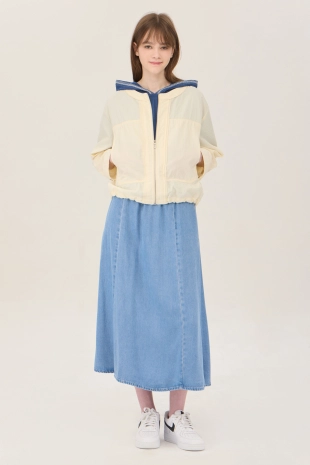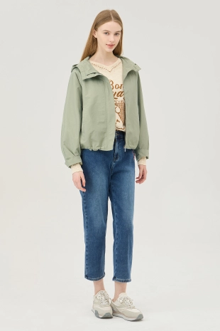 후드 디자인으로 캐주얼한 무드를 연출함.