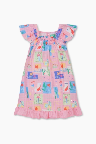 베네통만의 비비드한 칼라감이 돋보이는 쉬폰 원피스.