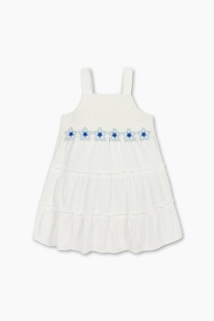 가볍고 시원한 시어서커 깅엄체크 소재로 제안된 원피스.