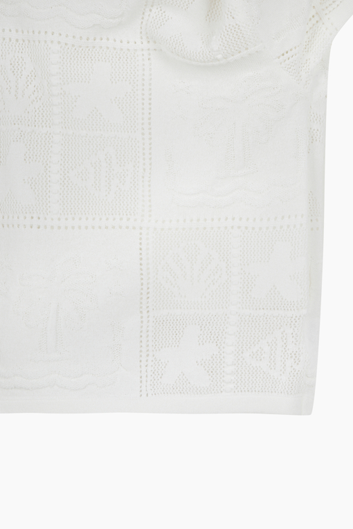 해변 모티브의 메쉬 니트 짜임이 매력적인 후드 니트 가디건.