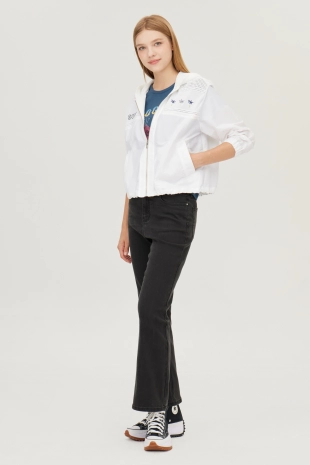 밑단 한 쪽의 자수 디테일로 포인트를 더해줌.