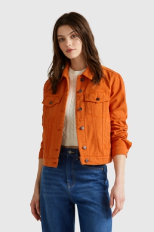 유니크한 컬러감과 캐주얼한 무드의 숏 데님 자켓.