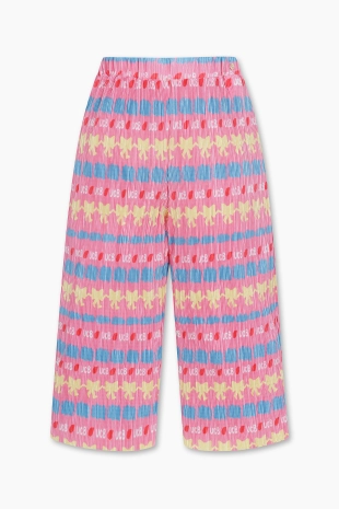 컬러풀하면서 시원한 주름지 소재로 제안된 와이드 팬츠.