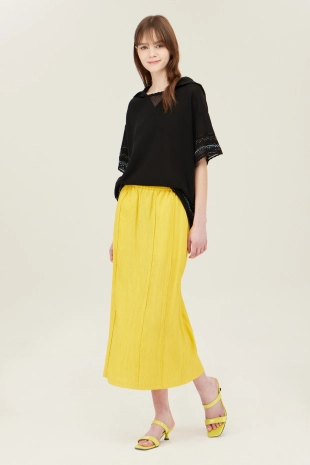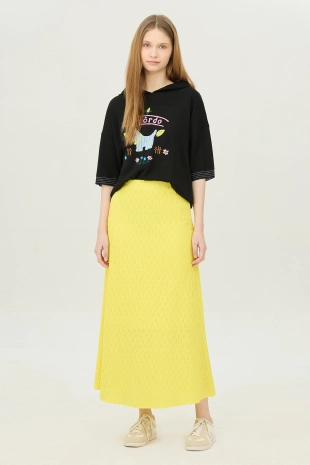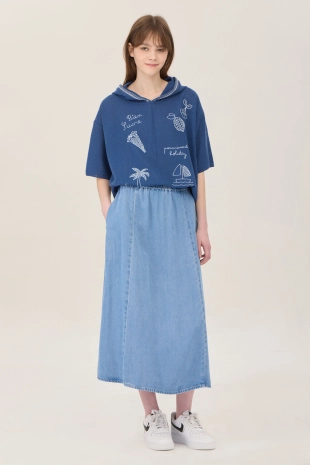 썸머 모티브의 자수 디자인으로 포인트를 준 후드 니트.