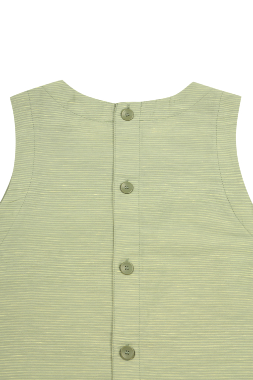 얇은 스트라이프 패턴으로 캐주얼한 슬리브리스 블라우스.
