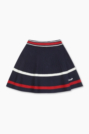 캐주얼하면서 단정한 무드로 제안된 플리츠 스커트.