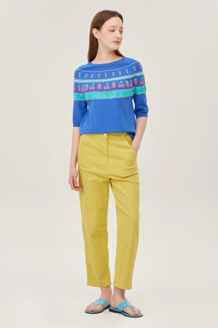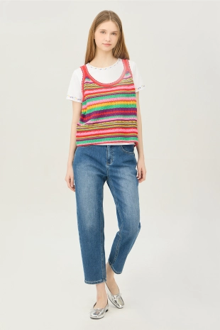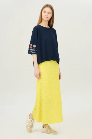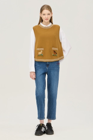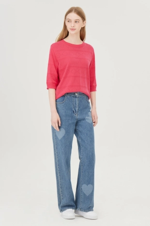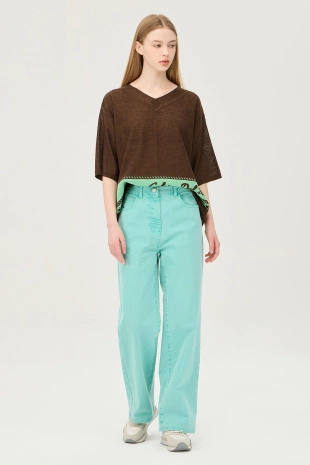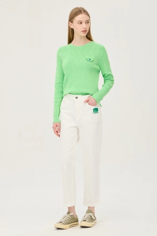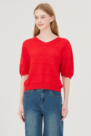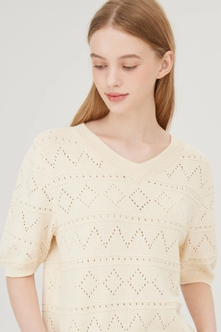 메쉬 슬리브단으로 시원하면서 유니크한 무드가 느껴지는 니트.