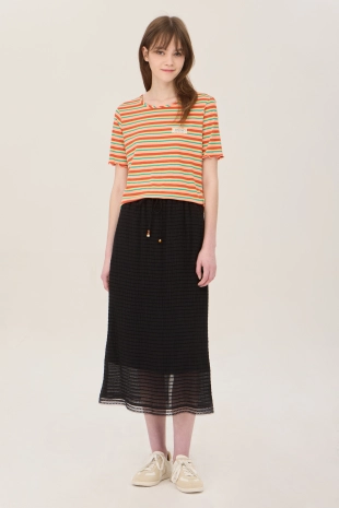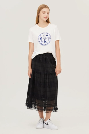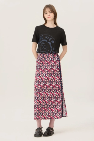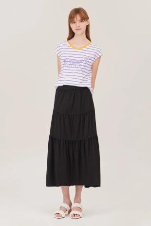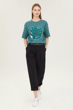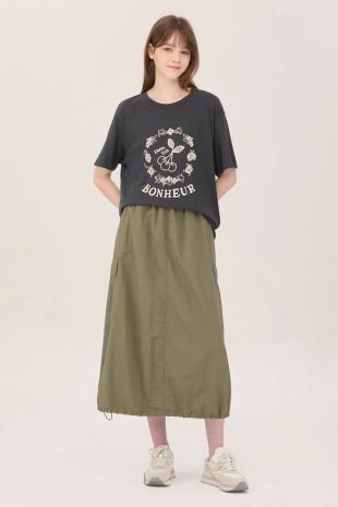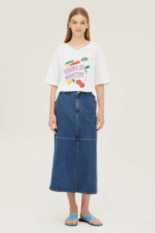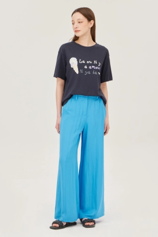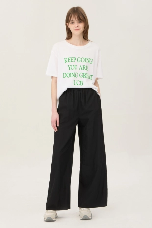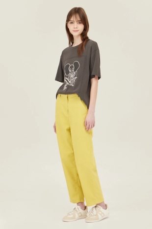 배색 컬러 레터링 프린팅으로 캐주얼한 무드의 반팔 티셔츠.