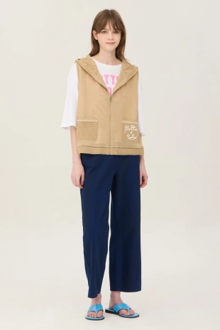부분 블록 메쉬 짜임과 배색 라인으로 유니크한 후드 베스트.
