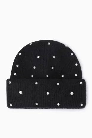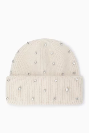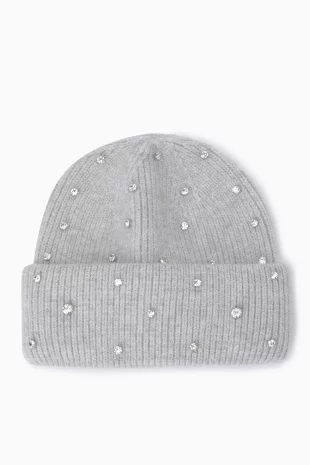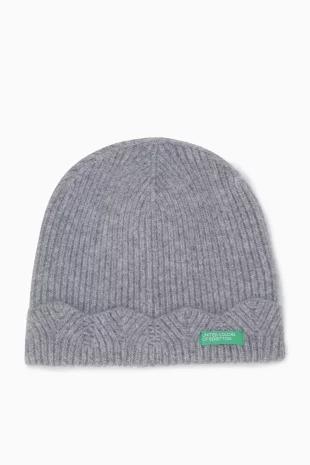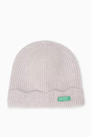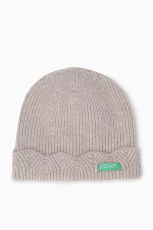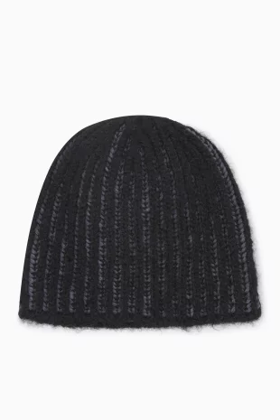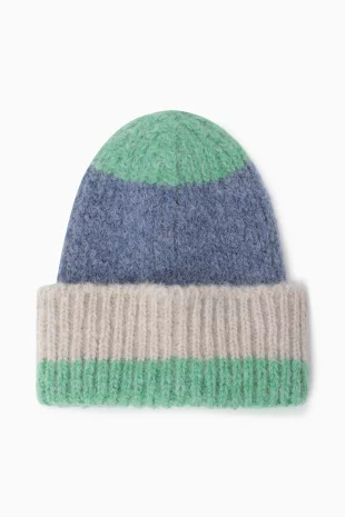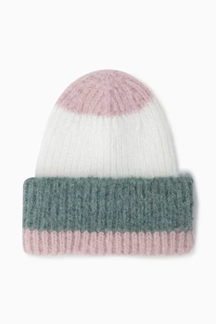 투톤을 믹스하여 유니크한 디자인의 니트 비니.