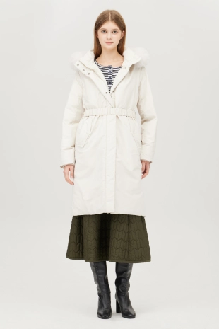 후드에 폭스 퍼를 적용하여 고급스러운 무드를 연출함.