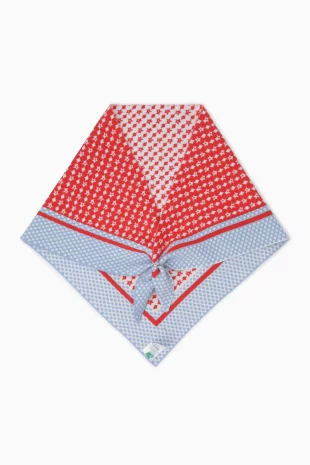 다양한 컬러 블록하여 경쾌한 무드를 연출하는 니트 머플러.
