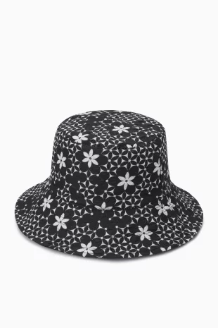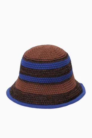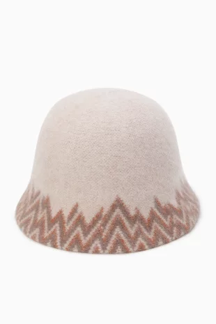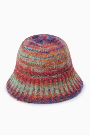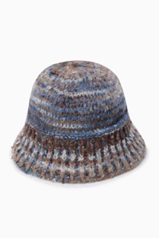 글리터 원사가 더해진 챙으로 포인트를 준 버킷햇.