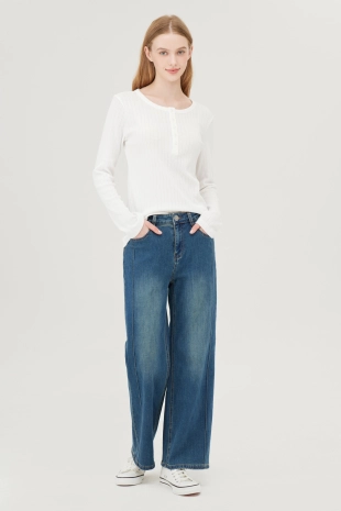 슬릿넥 디테일로 디자인성이 더해진 긴팔 티셔츠.