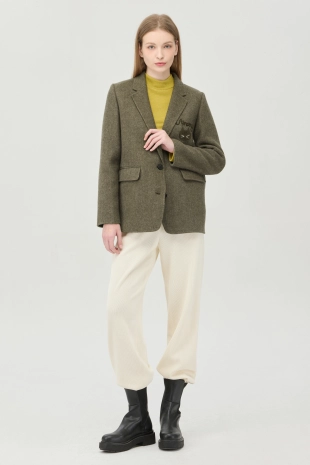 보온성이 우수한 울 혼방 소재로 착용감이 우수함.
