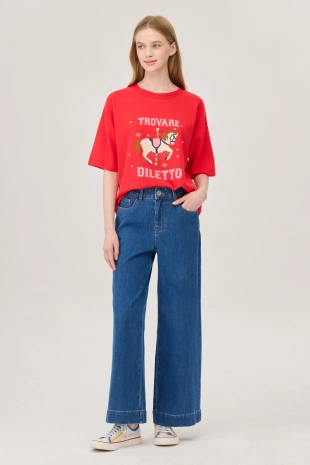 비딩 자수가 포인트로 더해진 경쾌한 무드의 반팔 니트.