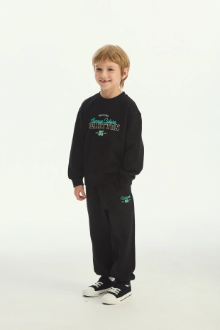 캐주얼하면서 힙한 무드의 그래픽 프린트가 돋보이는 조거 팬츠.