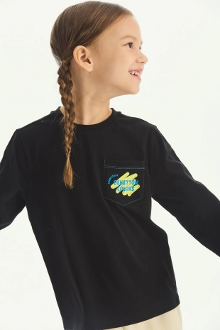 레귤러 핏라인의 기본 스타일 긴팔 라운드 티셔츠.