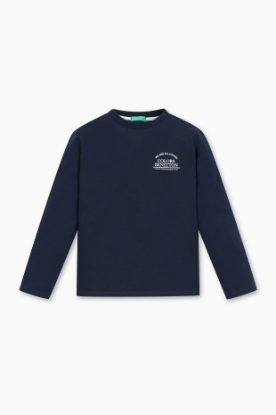 레귤러 핏라인의 기본 스타일 긴팔 라운드 티셔츠.