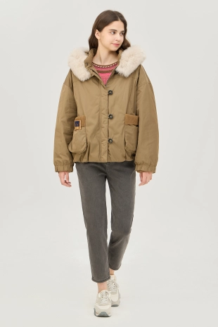 부드러운 천연 여우털이 풍성하게 달린 후드와 하이넥으로