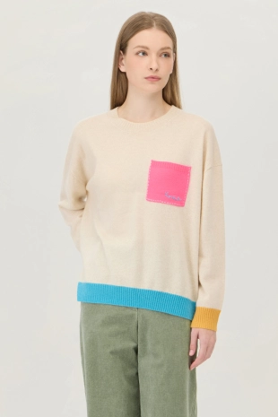 다양한 컬러 배색으로 포인트를 준 니트 풀오버.