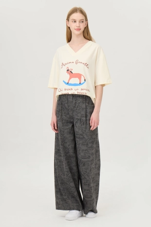 포니 모티브의 배색 프린팅으로 포인트를 준 반팔 티셔츠.