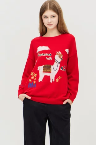 양 자카드와 레터링 자수로 포인트를 준 캐주얼한 니트 풀오버.