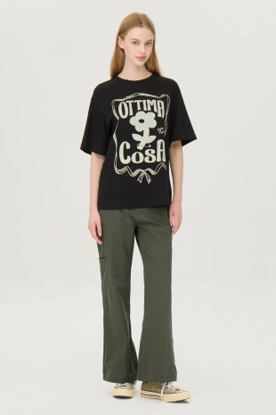 빈티지한 배색 프린팅을 적용하여 포인트를 준 티셔츠.