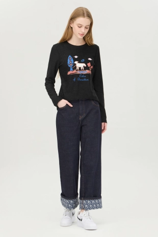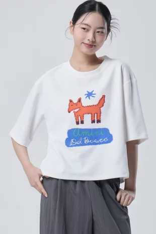 양 프린팅으로 경쾌한 무드를 연출하는 캐주얼한 티셔츠.