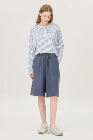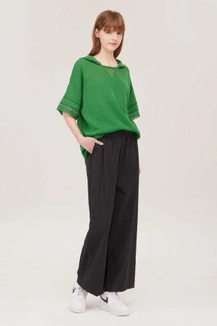 후드에 스캘럽 마감을 더해 포인트를 준 심플한 블라우스.