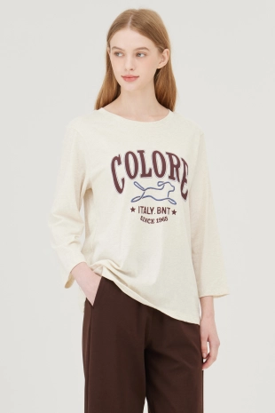 배색 레터링 프린트로 가볍게 디테일을 살린 티셔츠.