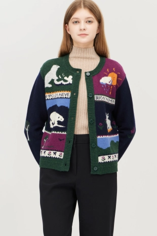 노드릭 패턴의 자카드가 더해진 캐주얼한 니트 가디건.