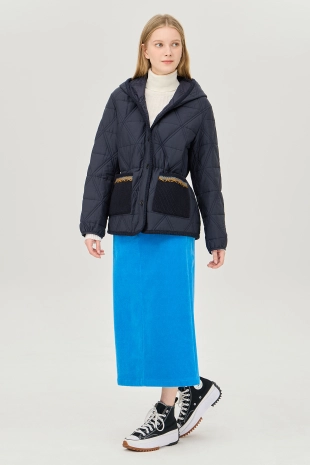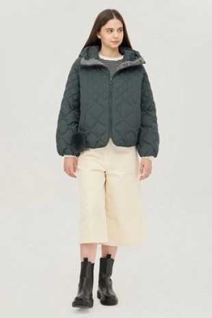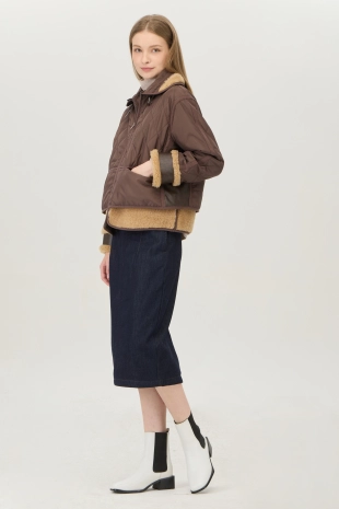 무스탕 스타일에 퍼 트리밍으로 고급스러운 덕다운 점퍼.