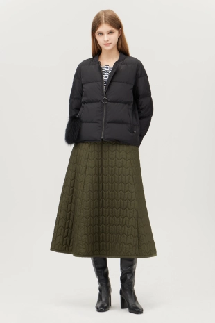 무스탕 스타일에 퍼 트리밍으로 고급스러운 덕다운 점퍼.