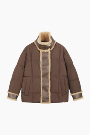 조직감이 묻어나는 가죽 디자인의 무스탕 점퍼.