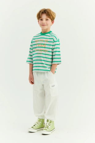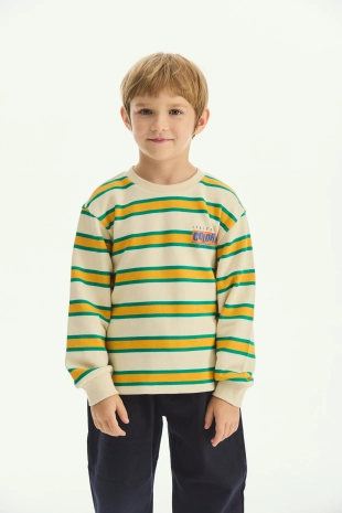 컬러감이 돋보이는 캐주얼한 스트라이프 티셔츠.