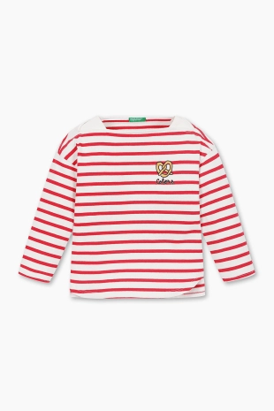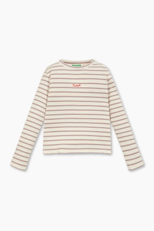컬러감이 돋보이는 캐주얼한 스트라이프 티셔츠.