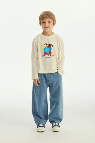 넥 라인과 소매단에 립 조직을 적용하여 깔끔하게 핏을 잡아줌.