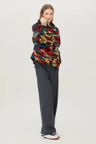 버튼 여밈과 토글 장식으로 포인트를 더해줌.