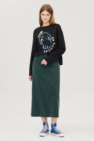 전판 경량 퀼팅 디자인으로 포인트를 준 롱 스커트.
