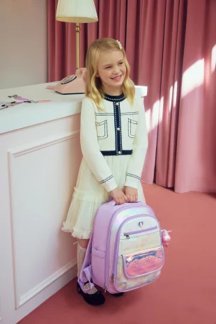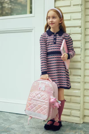 은은한 광택감이 도는 엠보 디자인과 블링한 스팽글이 포인트인 백팩.
