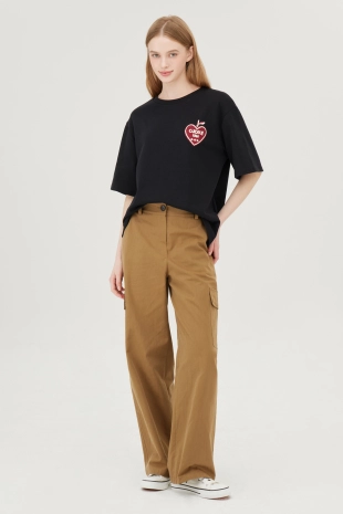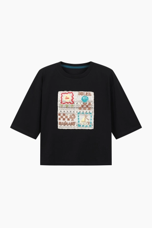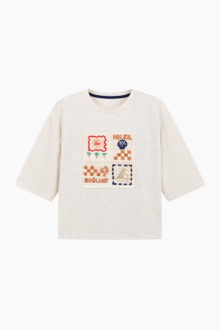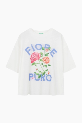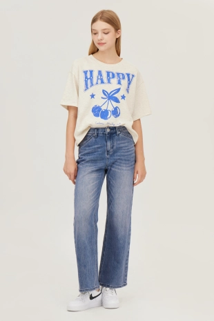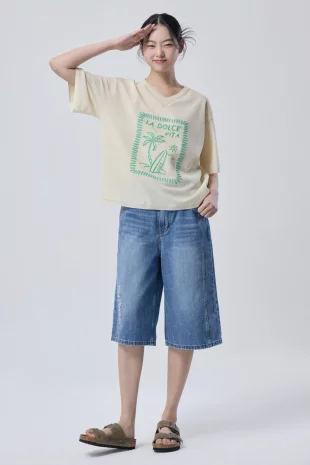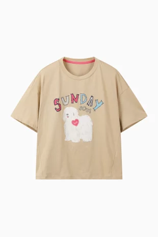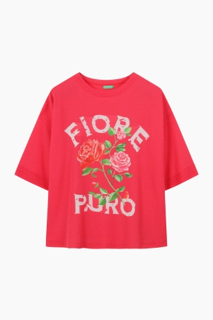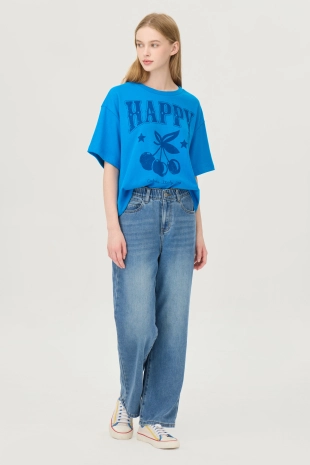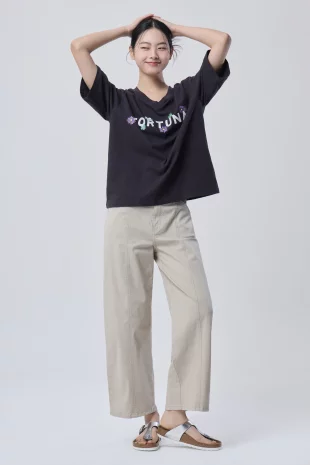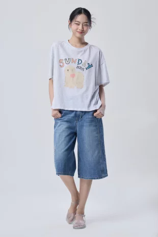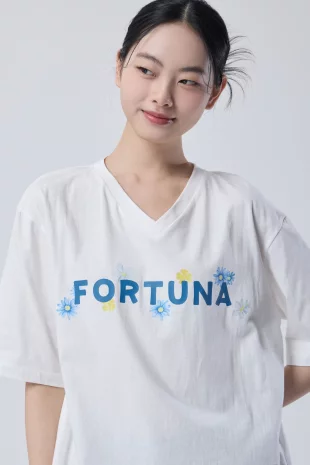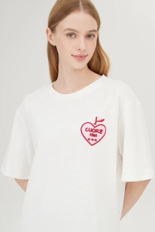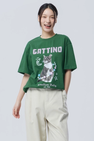 전면에 리본 클로버 프린팅으로 포인트를 준 반팔 티셔츠.