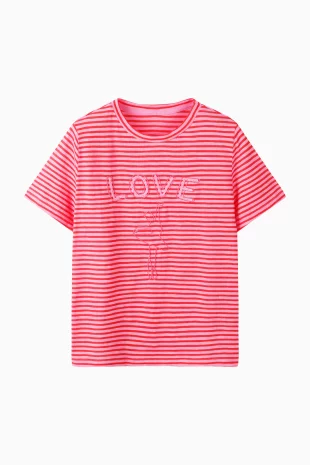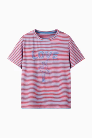 전면에 리본 클로버 프린팅으로 포인트를 준 반팔 티셔츠.