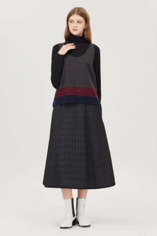 밑단 프릴 디자인과 자수 패턴이 러블리한 니트 베스트.